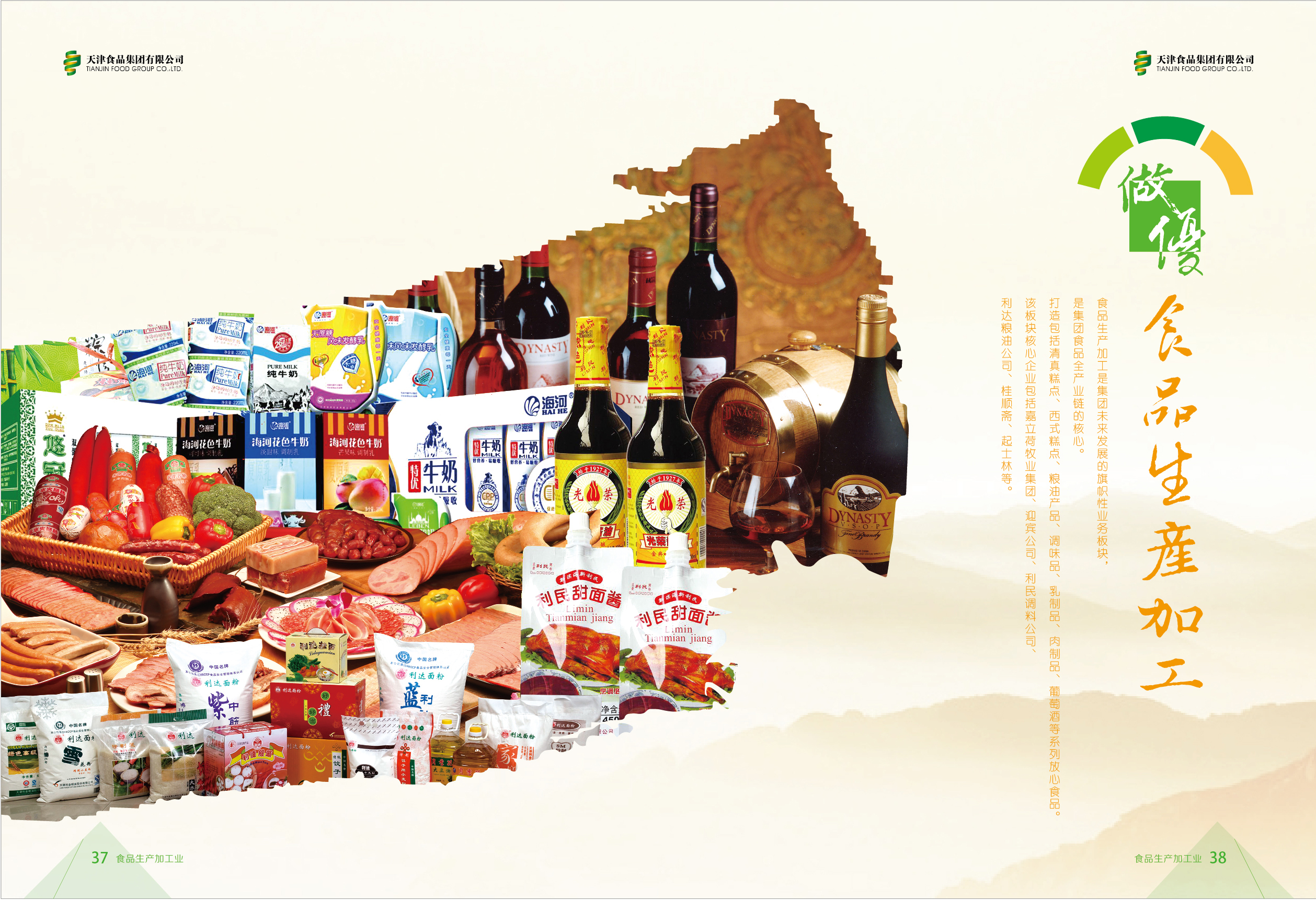 食品生產(chǎn)加工是集團未來發(fā)展的旗幟性業(yè)務(wù)板塊,是集團食品全產(chǎn)業(yè)鏈的核心。打造包括調(diào)味品、葡萄酒、肉制品、糧油產(chǎn)品、乳制品、清真糕點等系列放心食品。該板塊核心企業(yè)包括利民調(diào)料公司、王朝公司、迎賓公司、利達糧油公司、海河乳業(yè)公司、桂順齋公司等。