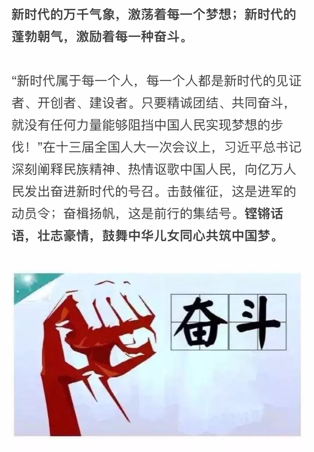 人民日?qǐng)?bào)評(píng)論員:每一個(gè)人都是新時(shí)代的奮斗者——六論習(xí)近平十三屆全國(guó)人大一次會(huì)議重要講話