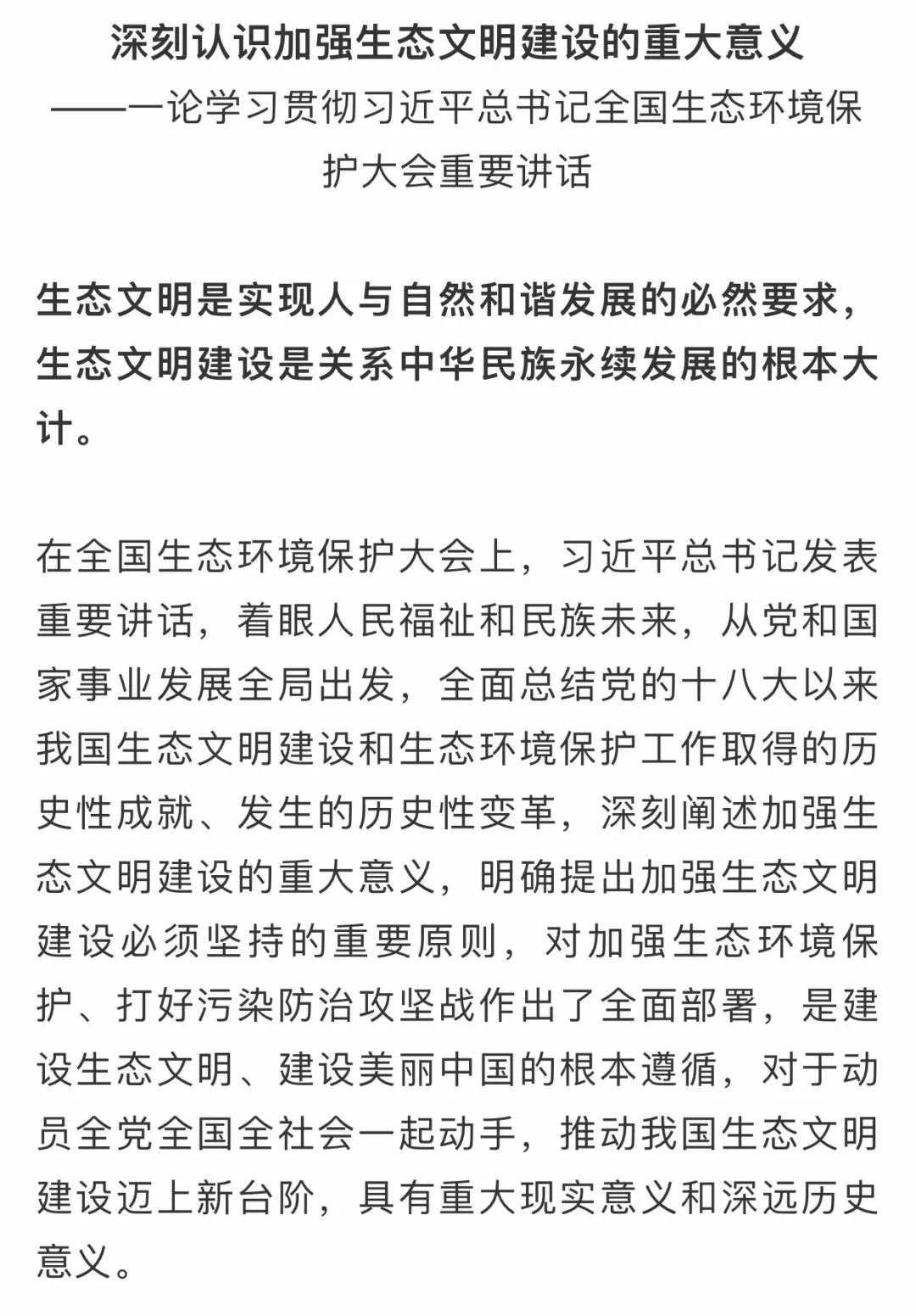 人民日?qǐng)?bào)評(píng)論員:一、二論學(xué)習(xí)貫徹習(xí)近平總書記全國生態(tài)環(huán)境保護(hù)大會(huì)重要講話