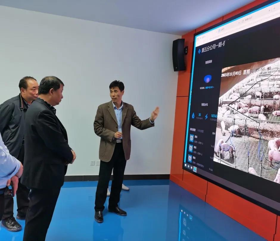 劉軍一行深入公司生豬產(chǎn)業(yè)技術(shù)中心,詳細(xì)了解了中心通過AI巡檢、智能環(huán)控、智能能耗、精準(zhǔn)飼喂、智能盤估、生產(chǎn)數(shù)據(jù)平臺(tái)等實(shí)現(xiàn)豬場遠(yuǎn)程可視化的管理模式,現(xiàn)場聽取了生豬疫病檢測中心工作情況及未來規(guī)劃的匯報(bào)。