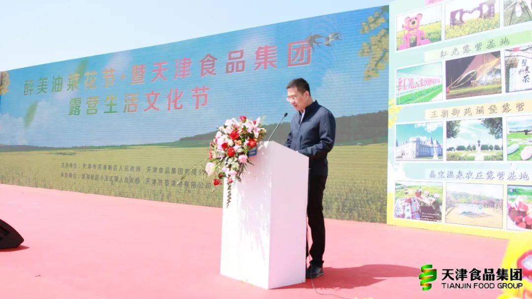 4月26日上午,天津食品集團(tuán)露營生活文化節(jié)暨“醉美”油菜花節(jié)在津港農(nóng)莊盛大開幕。集團(tuán)黨委副書記、工會(huì)主席王增春出席開幕式并致辭。