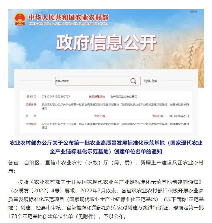 全國(guó)首批農(nóng)業(yè)高質(zhì)量發(fā)展標(biāo)準(zhǔn)化示范基地公布 嘉立荷牧業(yè)公司榜上有名