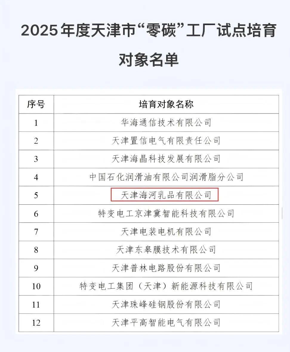 近日,天津市工業(yè)和信息化局公布2025年度“零碳”工廠試點(diǎn)培育對象名單。海河乳品公司憑借在綠色生產(chǎn)、能源結(jié)構(gòu)優(yōu)化及低碳創(chuàng)新領(lǐng)域的卓越實(shí)踐與前瞻布局,經(jīng)過多輪嚴(yán)格篩選,從眾多申報(bào)企業(yè)中脫穎而出,成功入選“零碳”工廠試點(diǎn)培育對象名單,彰顯了中華老字號乳企在綠色轉(zhuǎn)型道路上的先行姿態(tài)。